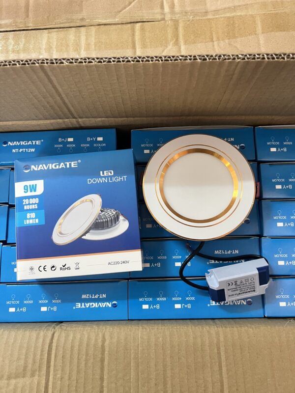 Đèn led âm trần NT-PT12W-B+J – Viền Vàng – 3 Chế độ màu Âm trần 110*140